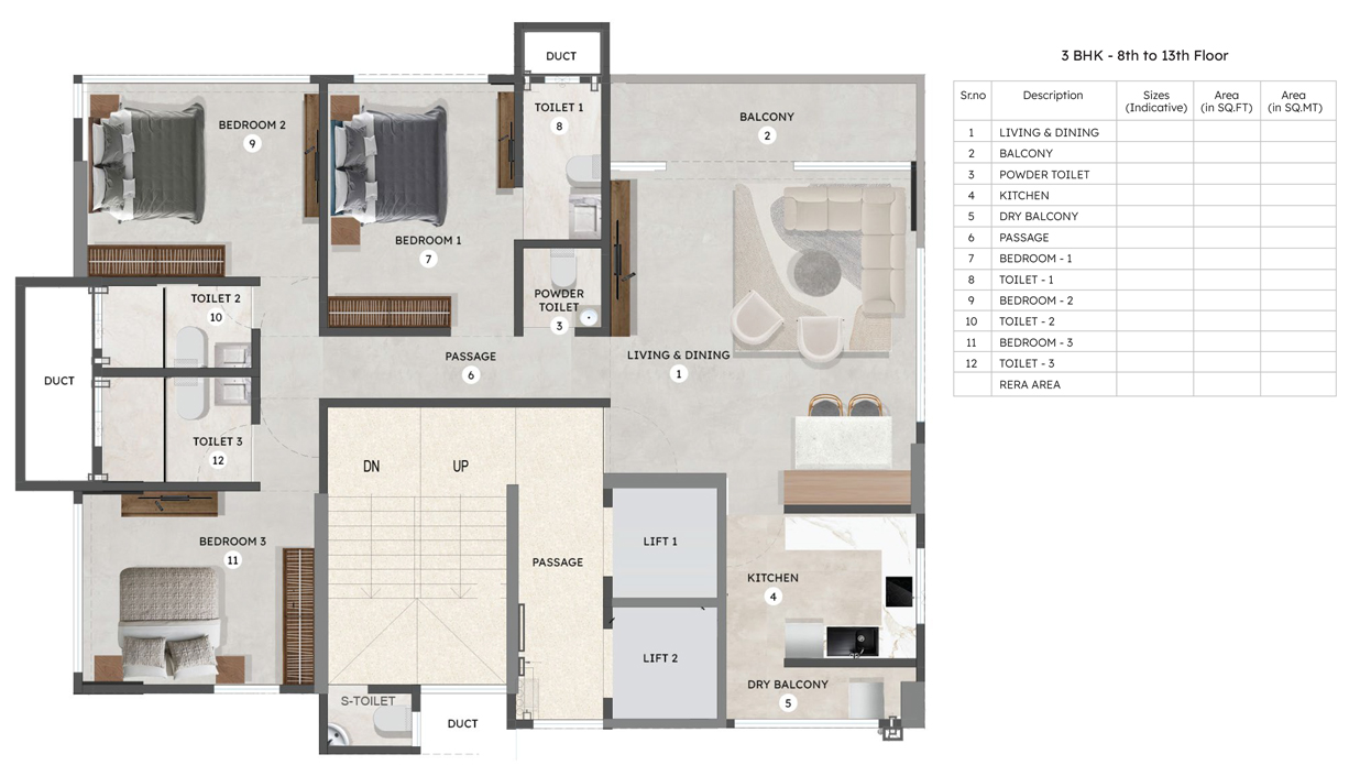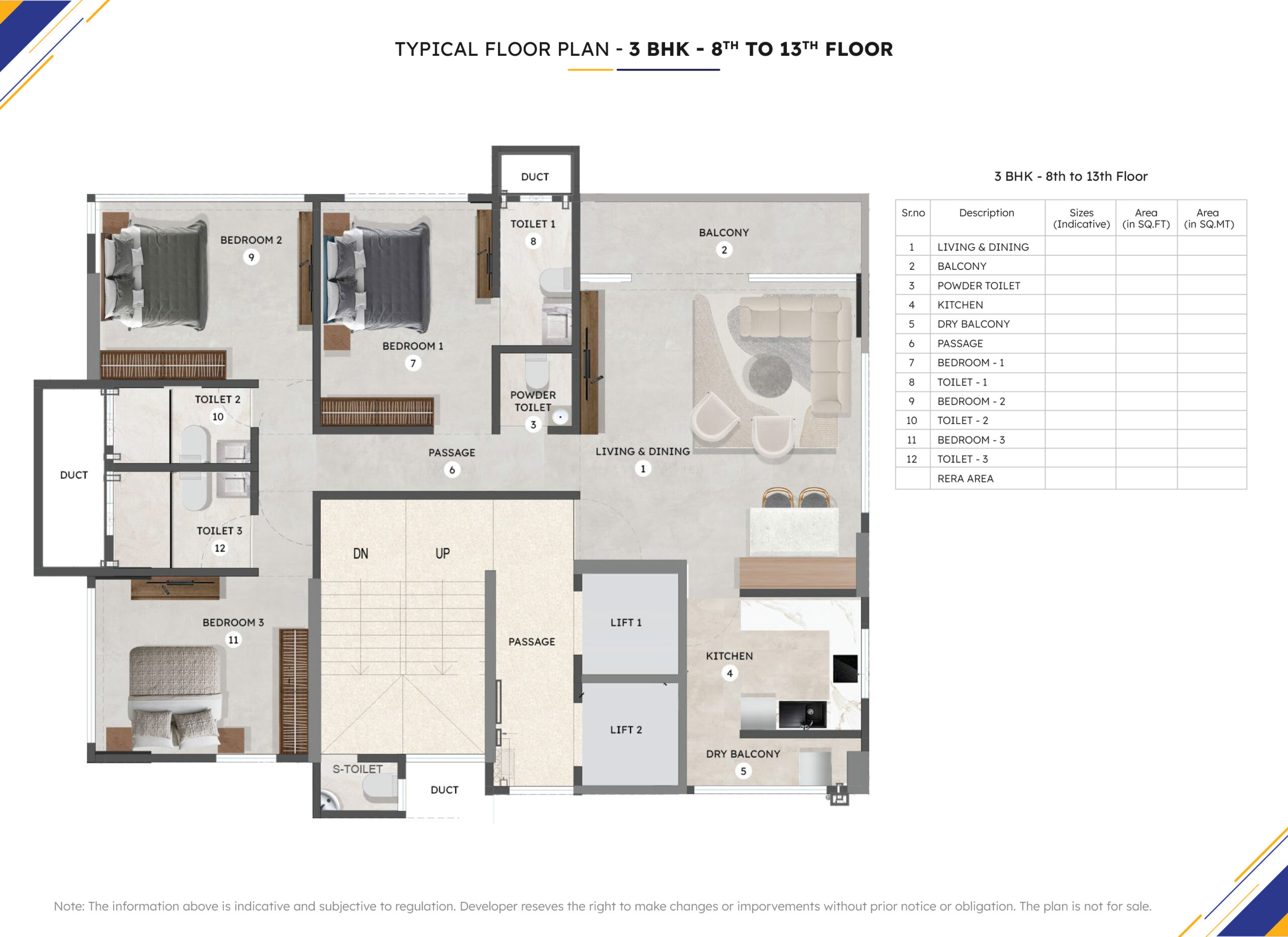 This communication is purely conceptual and not a legal offering. The information contained herein is only indicative in nature. The building design, project amenities and facilitates are subject to final approval by the concerned authority. All the artworks, features, facilities, views, surroundings, landscapes, amenities, images, models, aesthetics, building elevation, furniture, fixtures, interior work, design and/or any other details are artistic conceptualization for illustration purposes only and do not purport to replicate the offering. The list of standard offerings, amenities and other details are available for verification at site. Intending purchasers are requested to verify all the details before acting in any manner with respect to the project. The project is funded and mortgaged with Truhome Finance Limited (Formerly Shriram Housing Finance Limited).