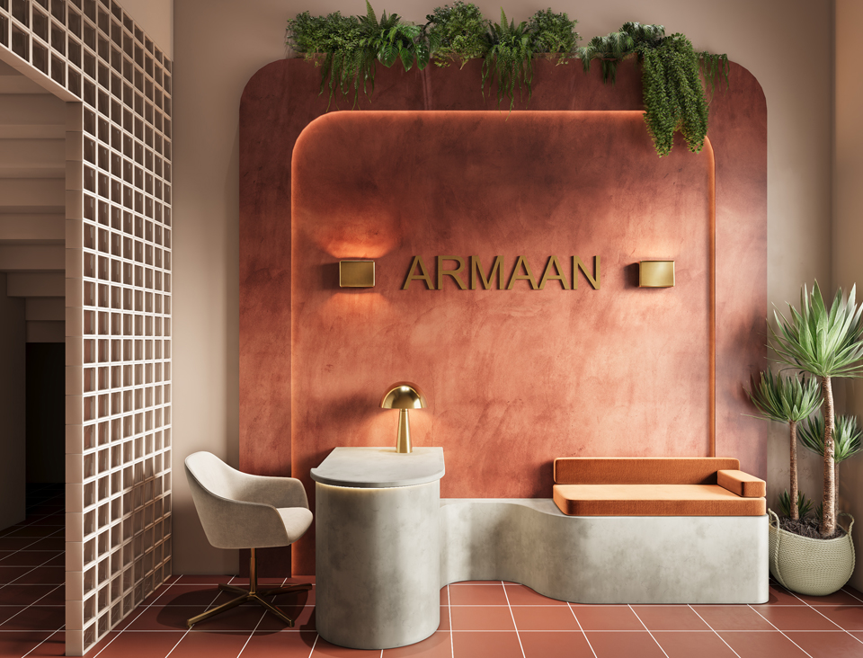 Armaan is a residential building blending contemporary design with traditional charm. It features earthy terracotta, wooden fins, exposed brickwork, and intricate brick jaali screens and arches, honoring the city’s heritage. Balconies with lush planters add a natural touch. Community amenities like a rooftop terrace and fitness centre foster connection. The warm terracotta and artistic jaali make Armaan a standout blend of tradition and modernity in the city’s skyline.