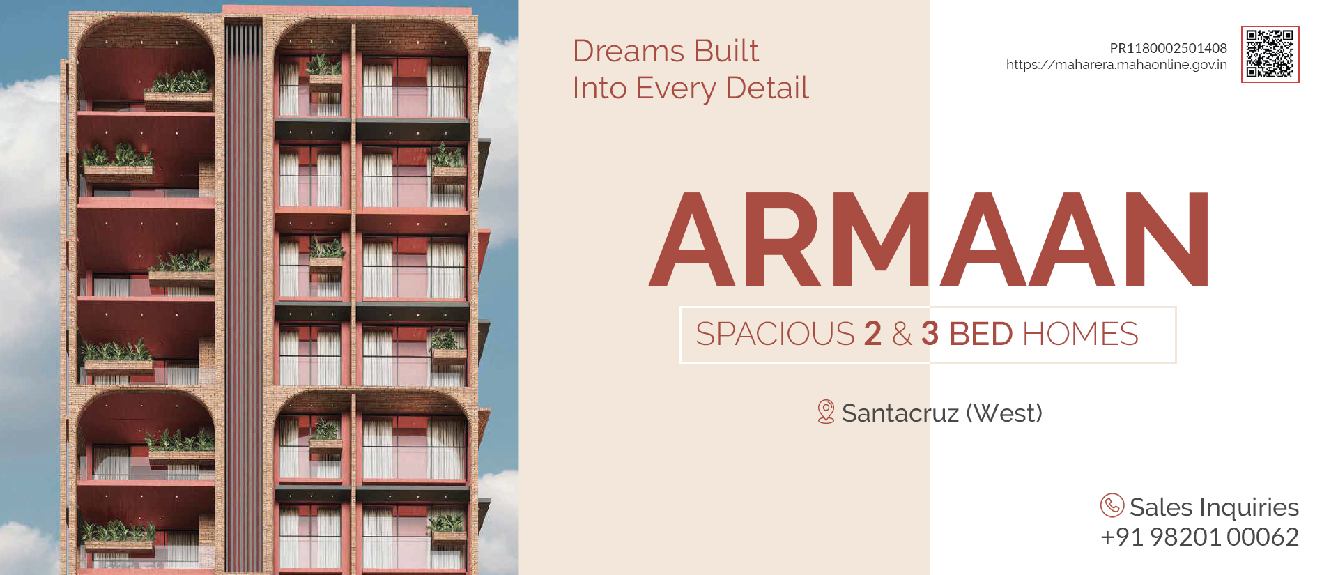 Nested in the vibrant heart of Santacruz West, Mumbai, ARMAAN’s prime location is further enhanced by its closeness to five-star hotels and the Chhatrapati Shivaji Maharaj International Airport, significantly boosting its appeal. With top-tier educational institutions, leading healthcare facilities, and vibrant retail and entertainment options, including the renowned Linking Road, the area offers a perfect cosmopolitan and secure community atmosphere.